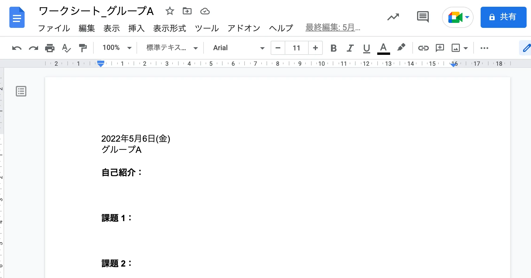 - スライドツールではなくドキュメントツールの場合,記入している最中に,自分たちよりも早い番号のグループの人たちが記入することによって,自分たちのページが急にずれて見づらくなってしまうことがあります.(ページブレイクを挿入する工夫が必要ですが,完全には防げません.)