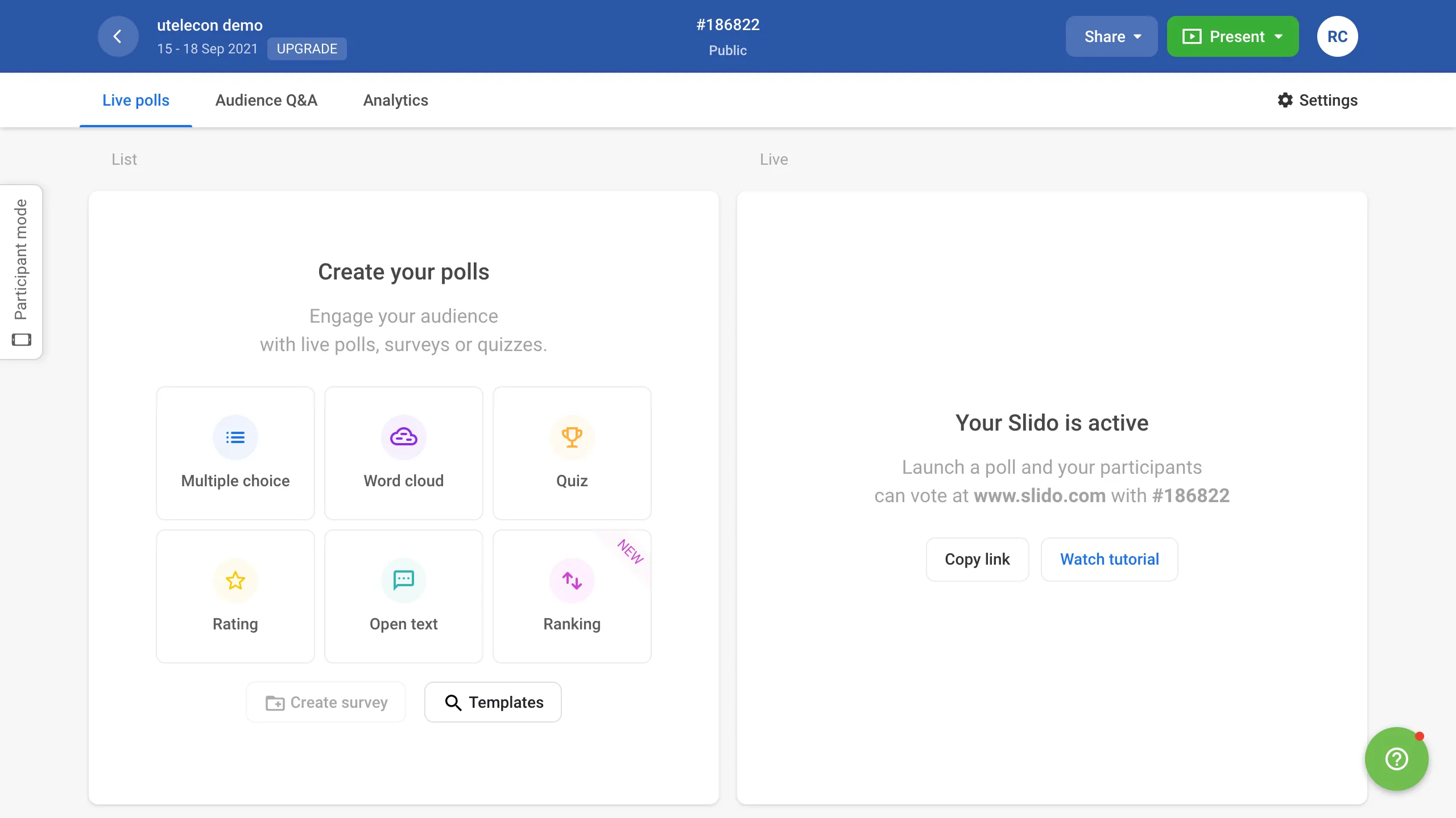 This page describes how to create an event using Slido.