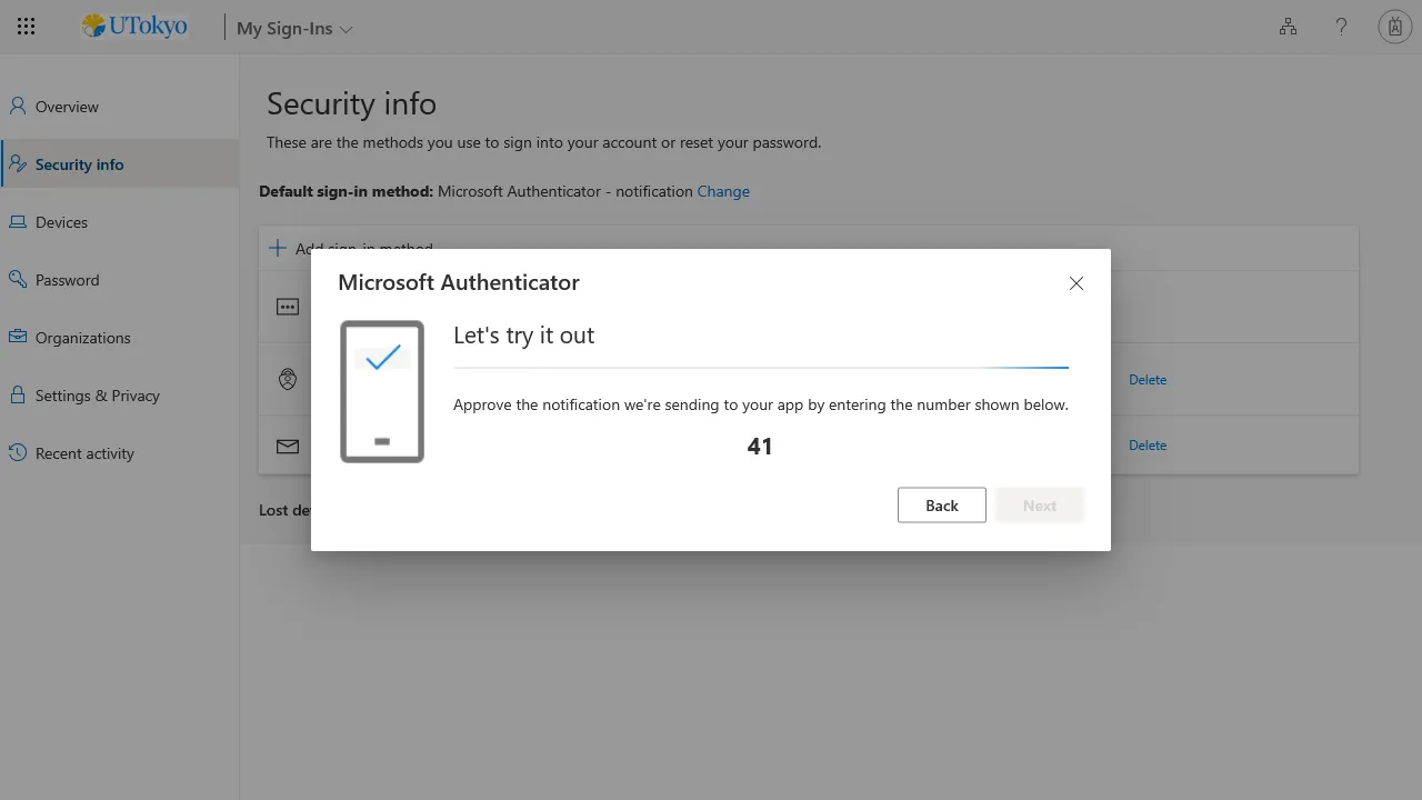 The next step is to check that you can sign in to your UTokyo Account using MFA.