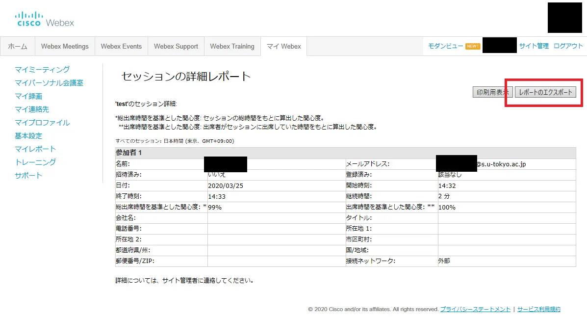 - A list of participants’ attendance will be displayed. Click “Export Report” to download the displayed content as a CSV file.