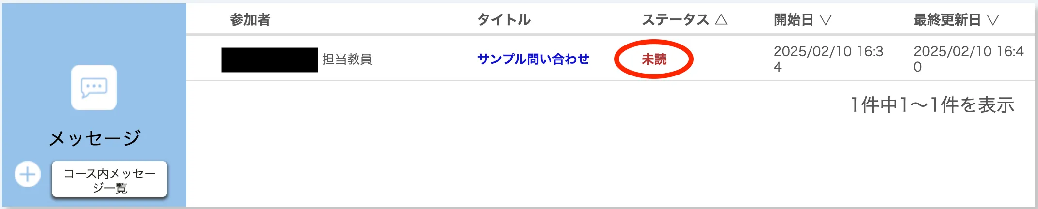 • 新しく会話が作られ,「ステータス」列に「未読」と表示されます.